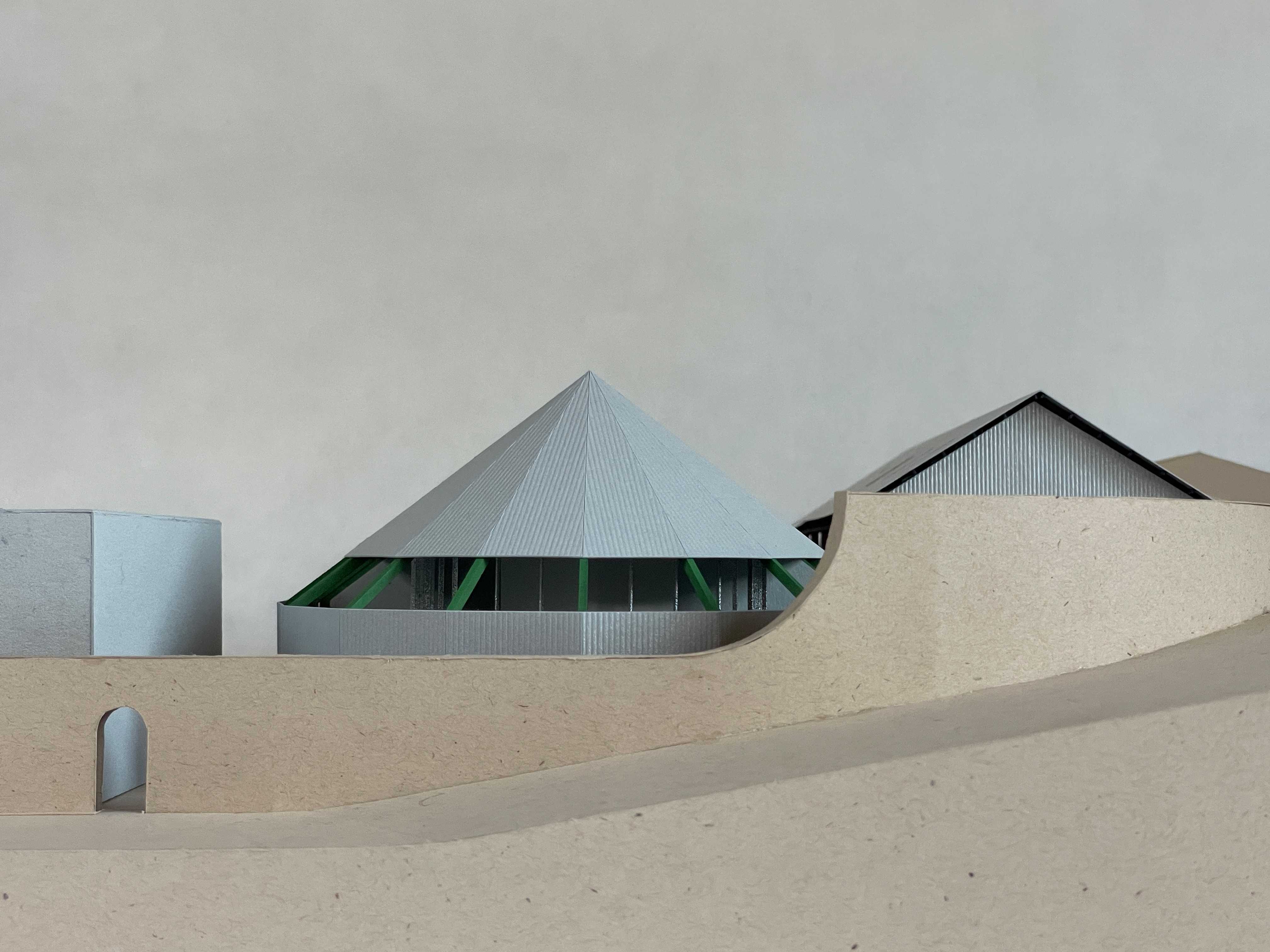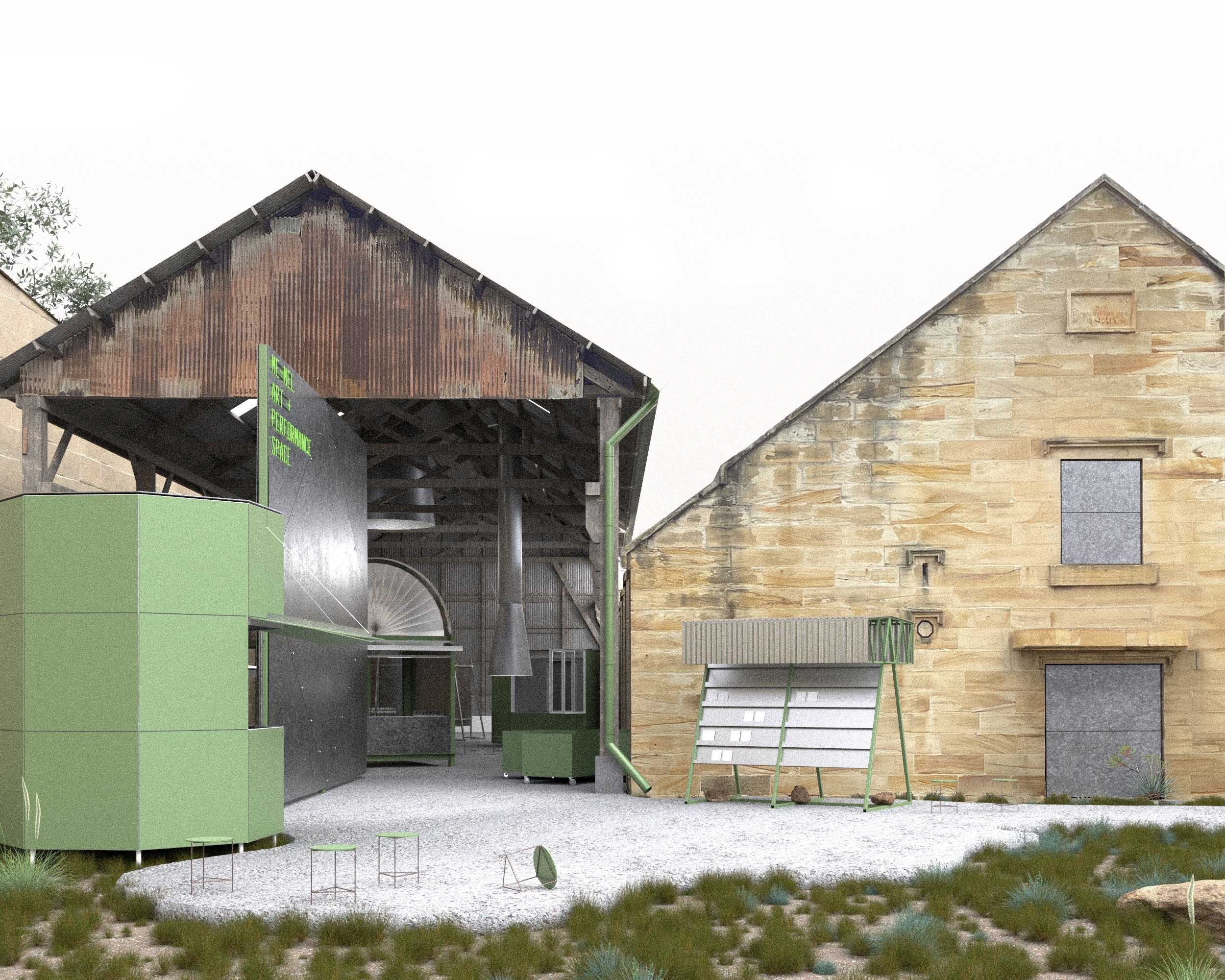This project investigates how the latent colonial and industrial infrastructures of Sydney Harbour could be converted into contemporary spaces of gathering and expression, while acknowledging their violent histories. The project proposes the conversion of an 1836 sandstone gunpowder store and a 1943 shed on Me-Mel (Goat Island) into a theatre and performance space through a series of light interventions. The shed becomes an open-air foyer with a series of light pavilions, while floor of the vast barrel-vaulted gunpowder magazine is excavated to create an in-the-round performance space. A new structure houses back-of-house functions and unites the two existing buildings.