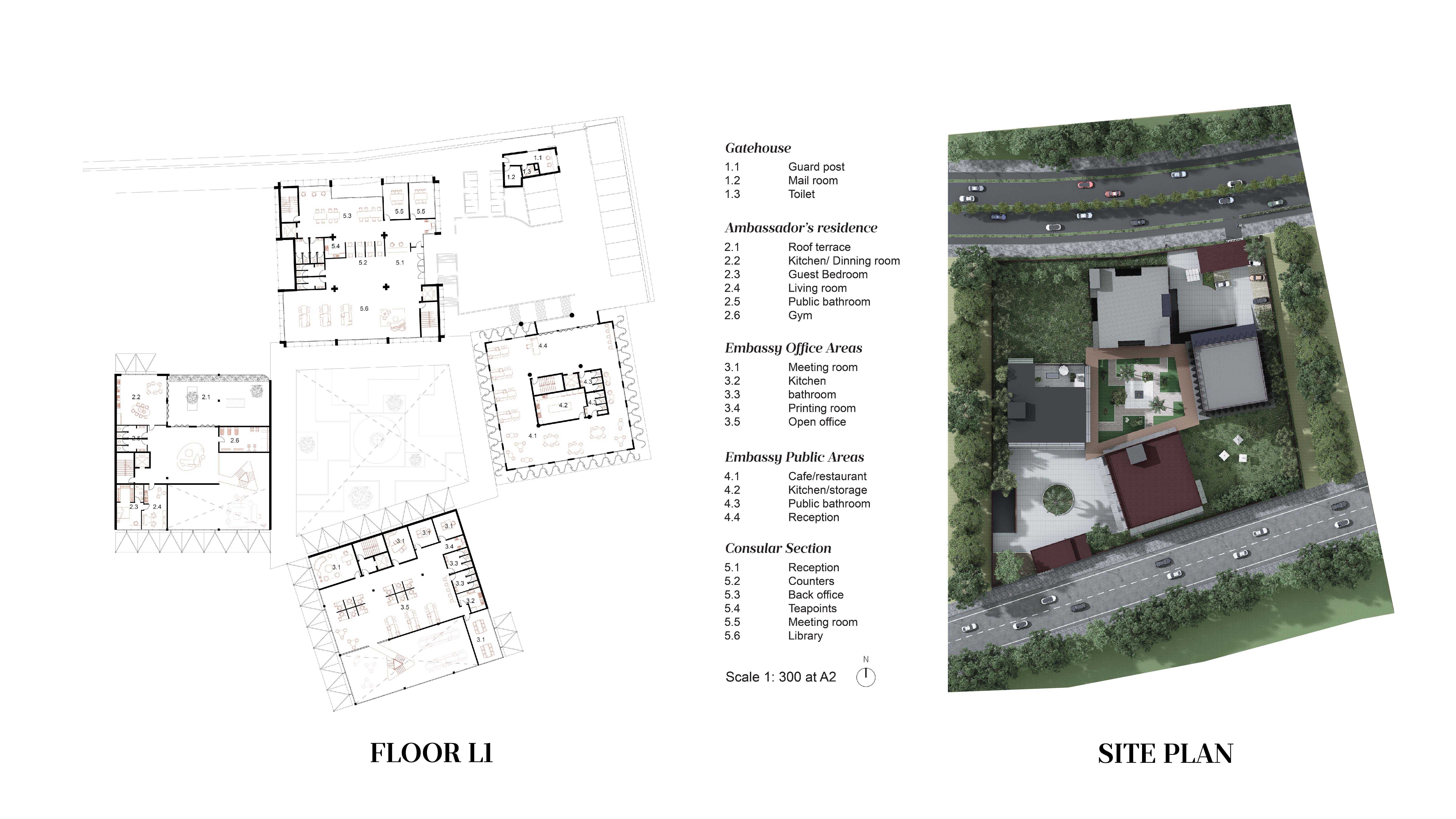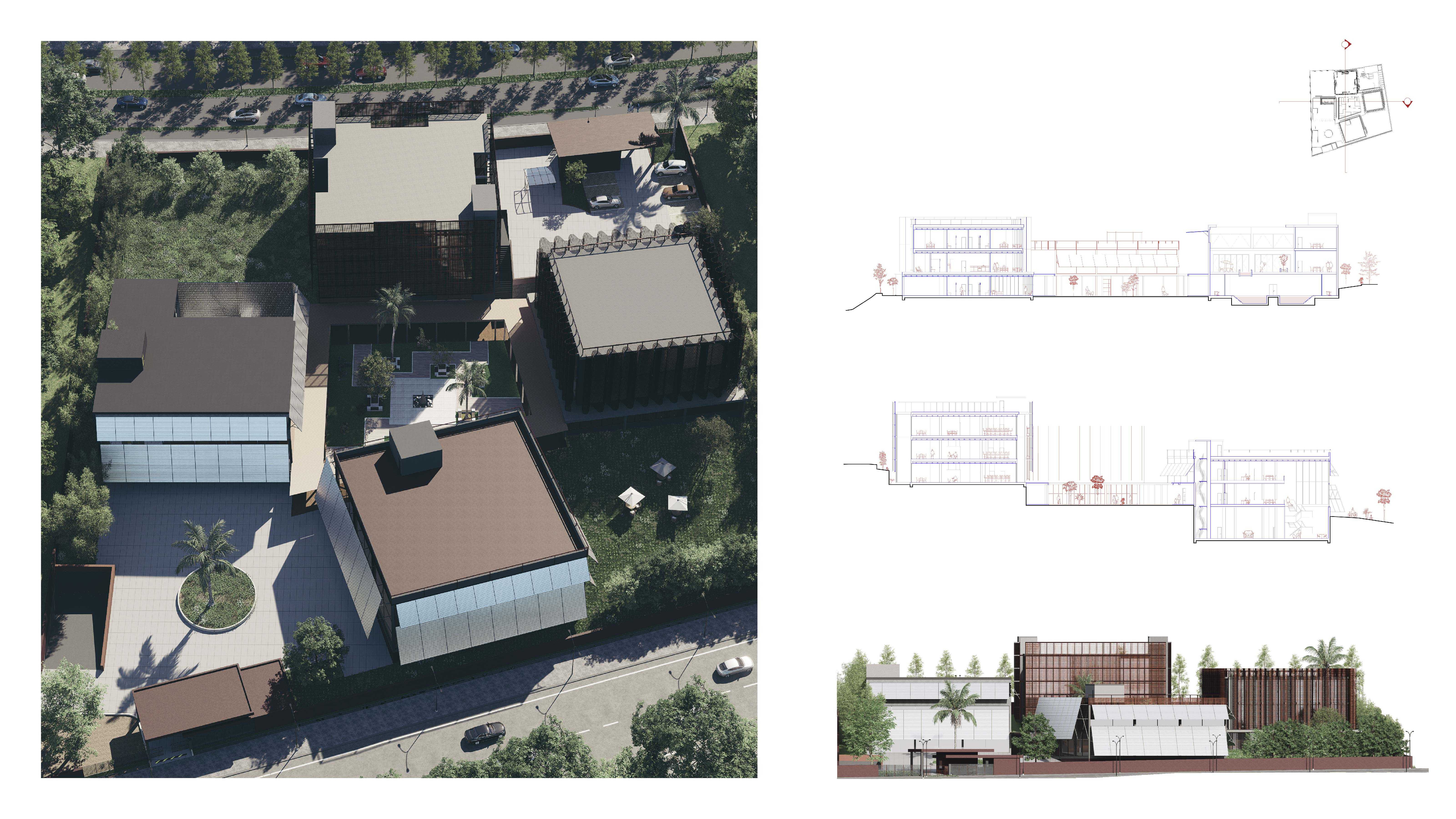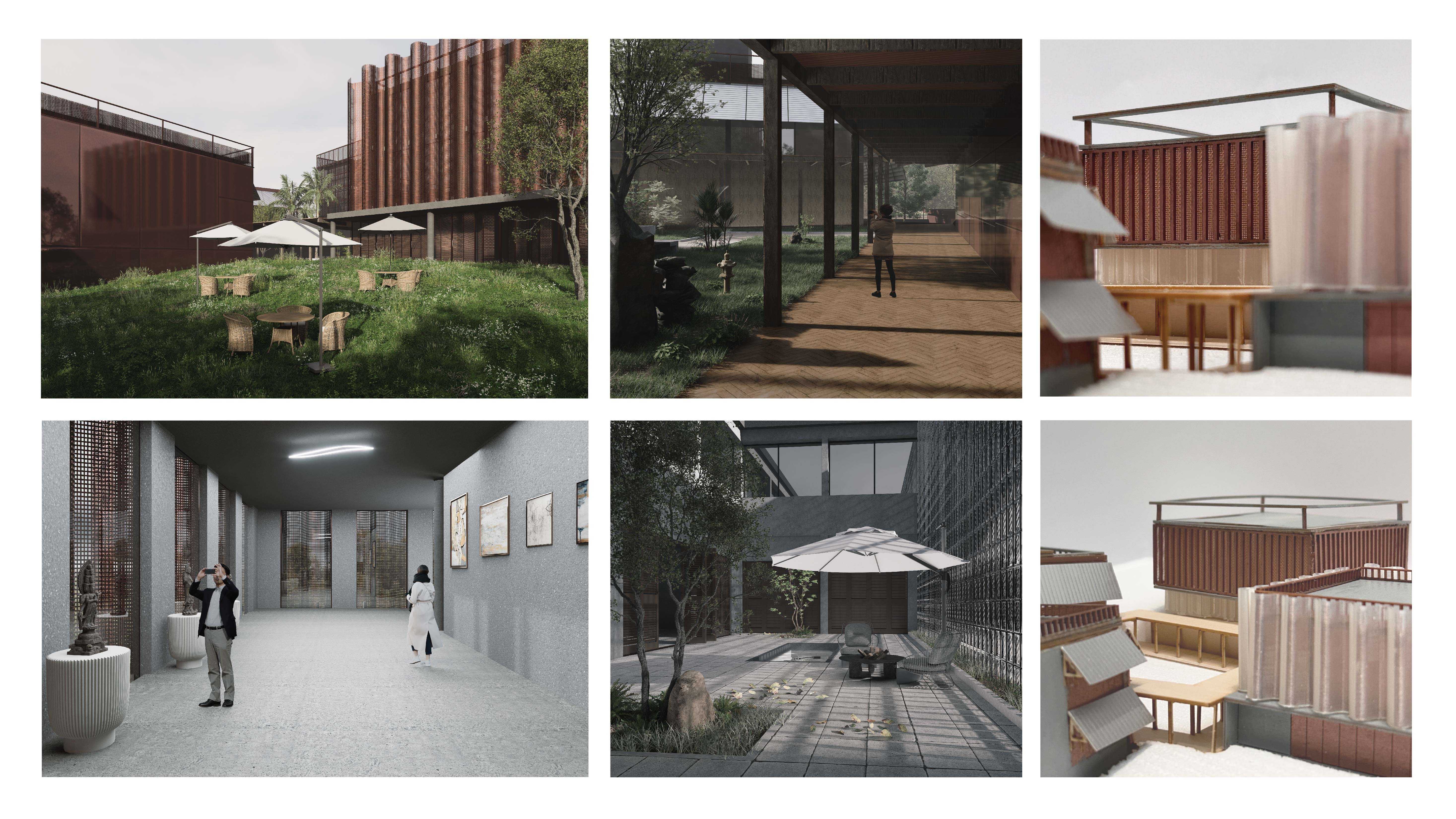 The Thai Embassy design in Indonesia creates a sensory journey through the core concept of "Unity in Diversity," blending Thai and Indonesian cultural elements. Rooted in Thailand's Buddhist heritage, the design is inspired by traditional Thai architectural composition, emphasising balance, harmony, and spiritual depth. A central corridor links four distinct volumes, symbolising the structure of a Mandala and representing interconnectedness and cosmic order. Each space engages the senses—a serene pool, fragrant herbal landscapes, and perforated copper facades engage with light—evoking contemplation and connection. The design reimagines the traditional embassy experience, inviting the public into a profound and immersive cultural journey.