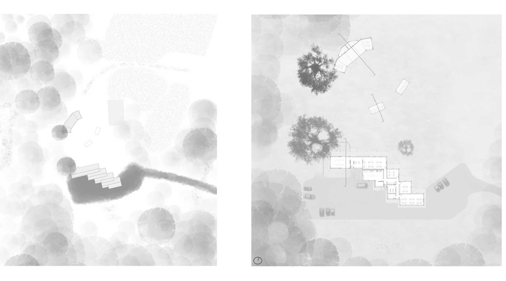 Arboreal Unity is a project that seeks to lightly but meaningfully improve the amenity at the Two Fold Aboriginal Corporation at Jigamy Farm. The project has taken place through an ongoing process of co- envisioning, where careful consideration of principles of country and a grounded ethos of respect, humility and integrity has resulted in a proposal that attempts to honour the wishes and knowledge of the Two Fold community. Both Greg Campbell’s account of elder Lulu’s teachings in ‘Total Reset’2 and the Uluru Statement from the Heart3 have been carefully read and deeply listened to, creating an environment of understanding, awareness and reciprocity. The proposal addresses the needs expressed by the co- envisioners initially, expanding the available office space and providing an improved and larger commercial kitchen.4 Further, the project proposal involved a redevelopment of the existing stage on site. A design concerned with flexibility and humility on the site made from locally sourced Spotted Gum aims to minimise the impact on country by expanding and contracting as needed to fulfill the program. Primarily this portion of the project has been considered to accommodate the annual Giiyong Festival. The project aims to be a synthesis of knowledge of the First Nations peoples and the contemporary sensibilities of kinetic architecture.