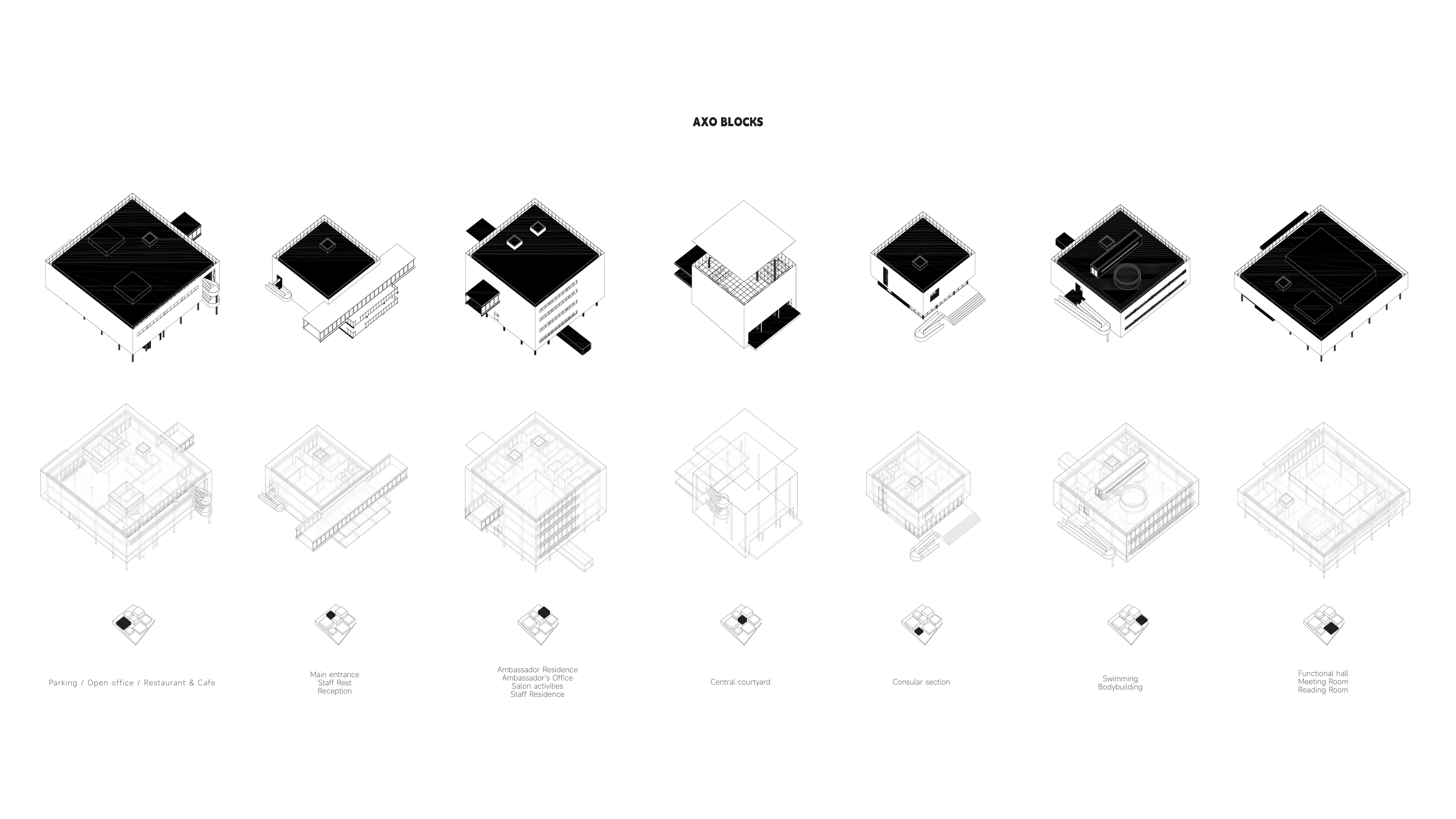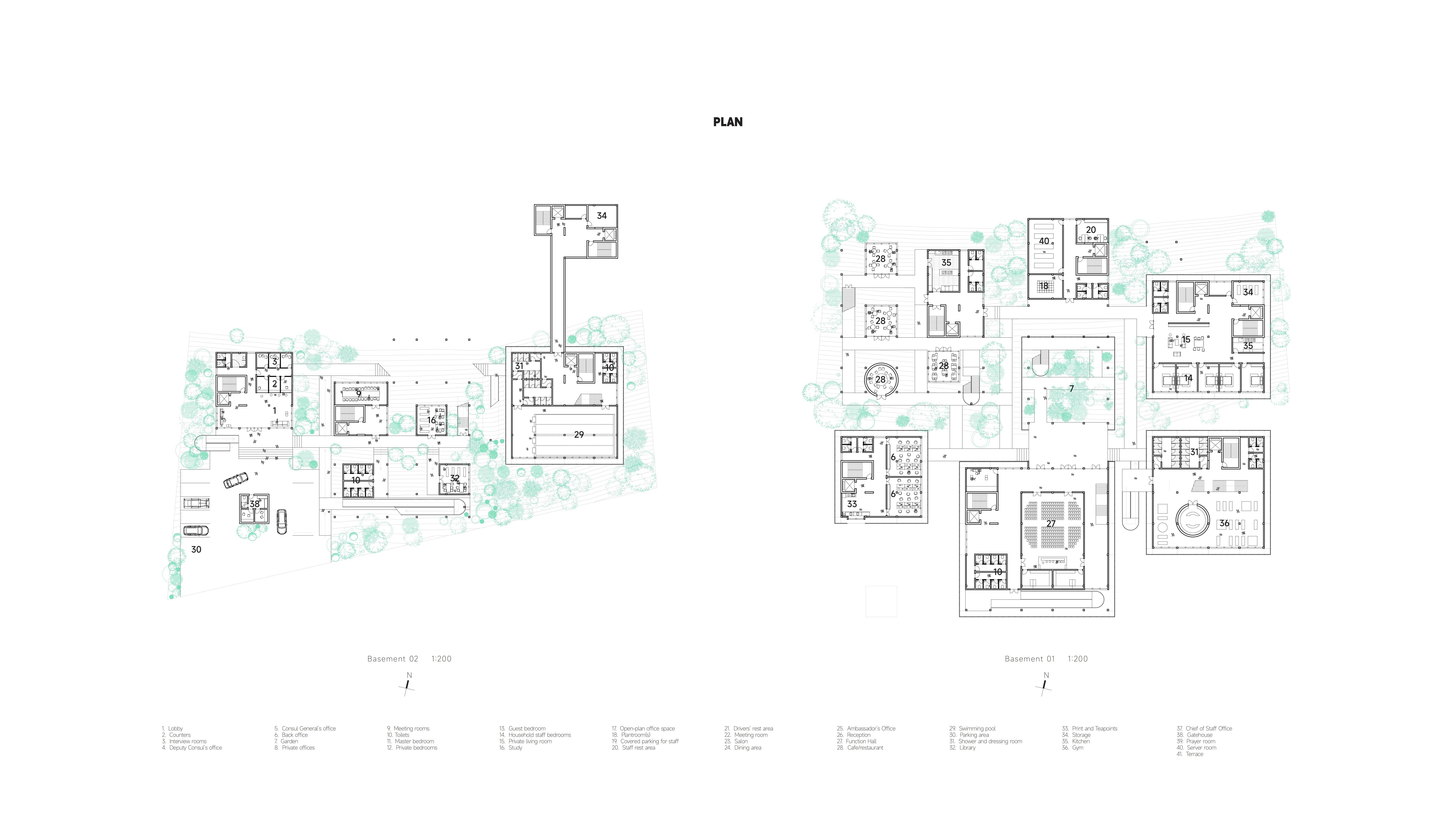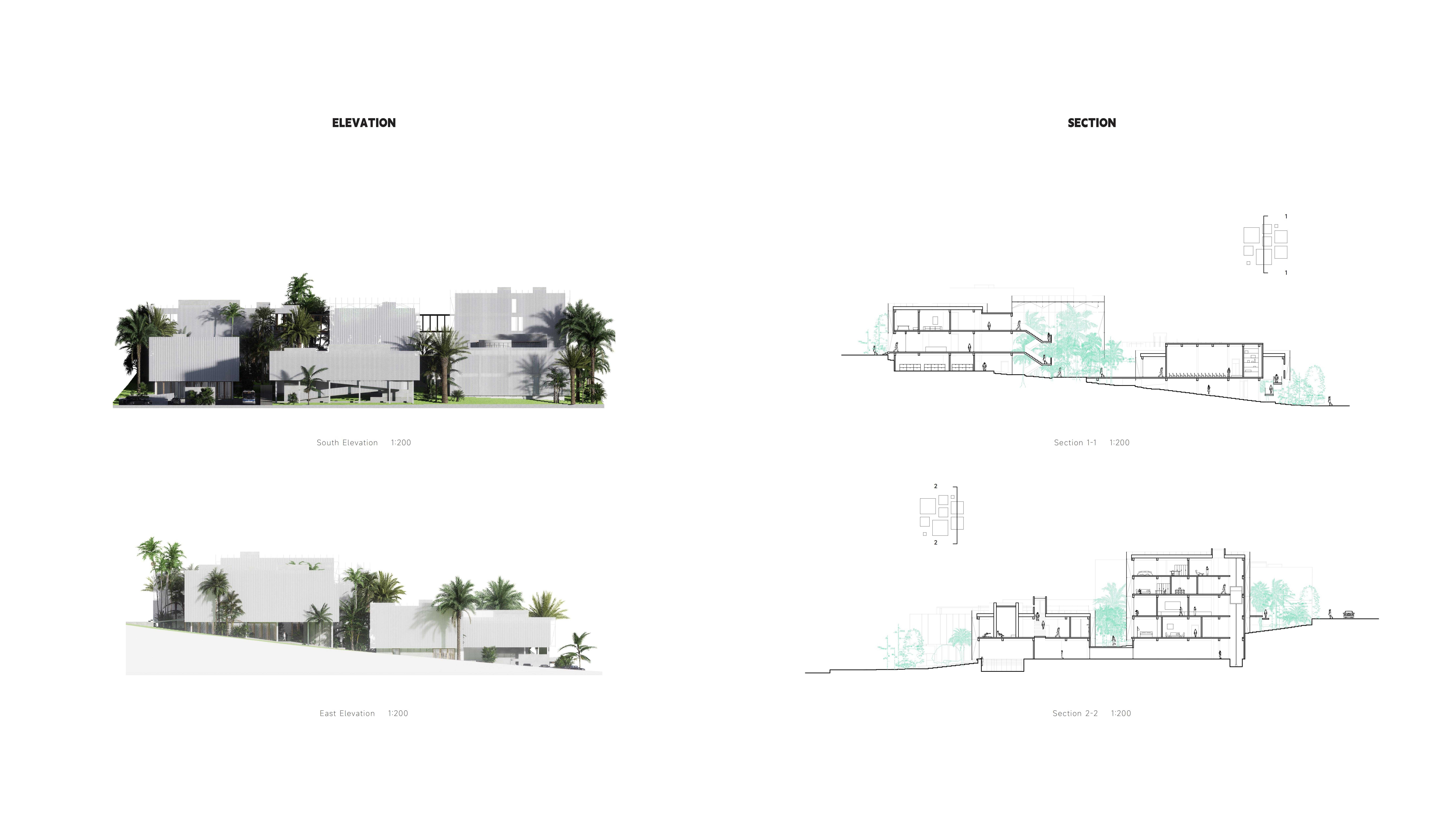 Can architecture convey emotions and attitudes? What should an embassy built on Indonesian aim to express, especially considering it’s a Dutch embassy? Due to the Dutch colonial history of over 300 years in Indonesia, I believe that architecture should show greater respect for the site. The building volume should be minimized. Multiple scattered buildings according to the site's natural slope to convey the architecture’s non-dominant relationship with the site. The double facade can effectively block direct sunlight while providing a shaded semi-outdoor space for people’s activities.