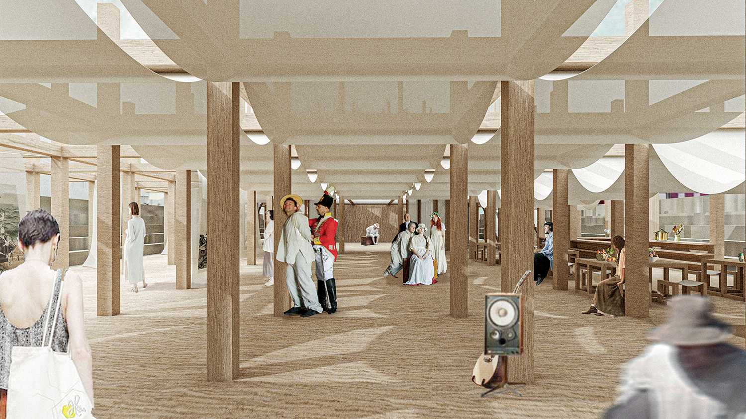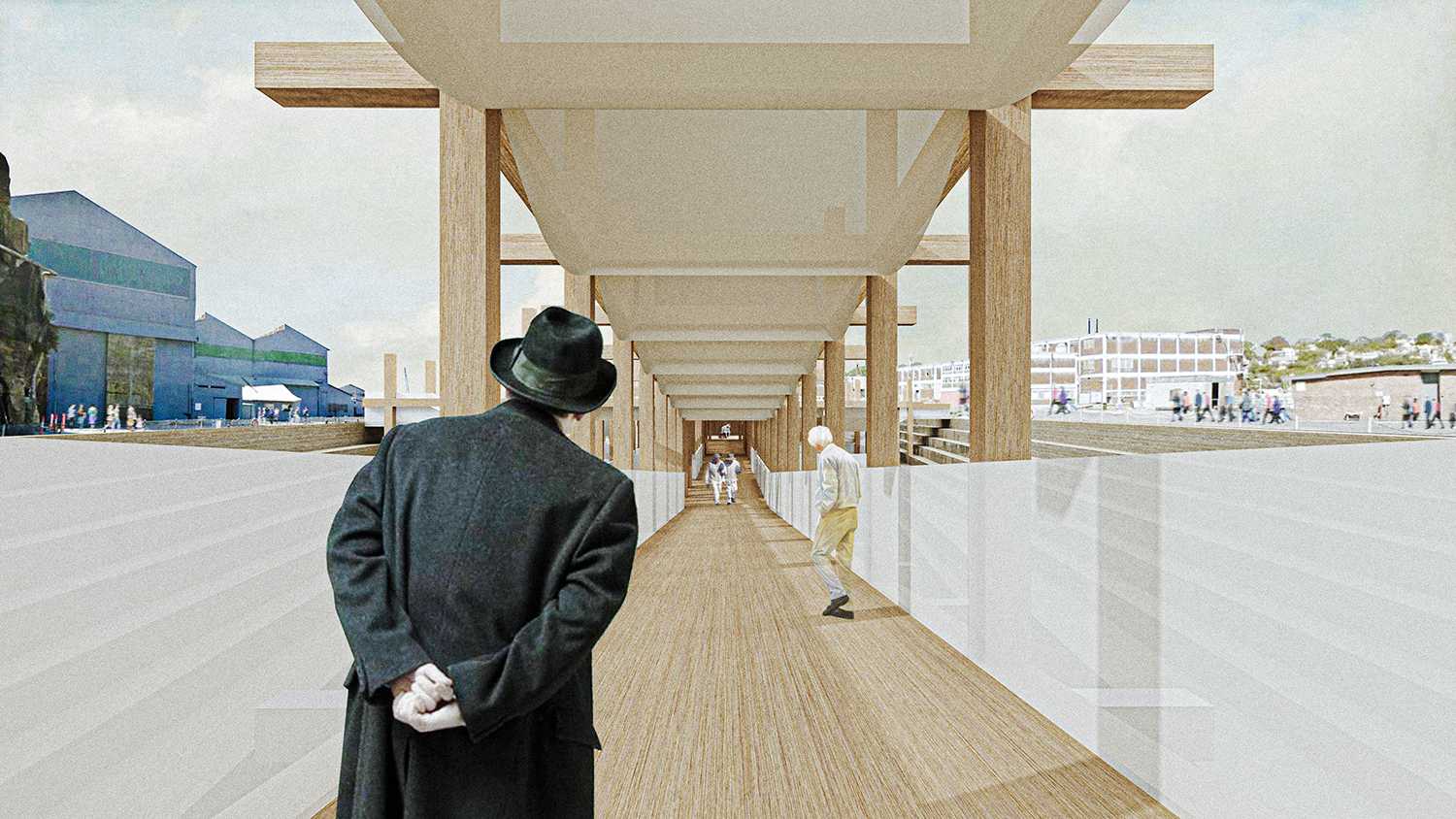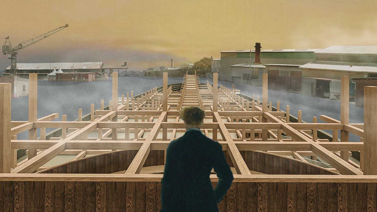 This theatre design is informed by Carl Jung's theory of the "collective unconscious," specifically examining the universal longing for home amidst forced displacement. The architecture symbolically reconstructs the shipbuilding experiences of prisoners at Fitzroy Dock, transitioning spatially from sparse to dense, low to high, as a form of dramatic expression. Positioned against the sea, with the imagery of departing ships, it reflects both the pursuit of freedom and the transformation of homesickness. Upon departure, as audiences look back, the structure invokes empathy for the prisoners' resilience, survival, and enduring sense of home in a foreign land.