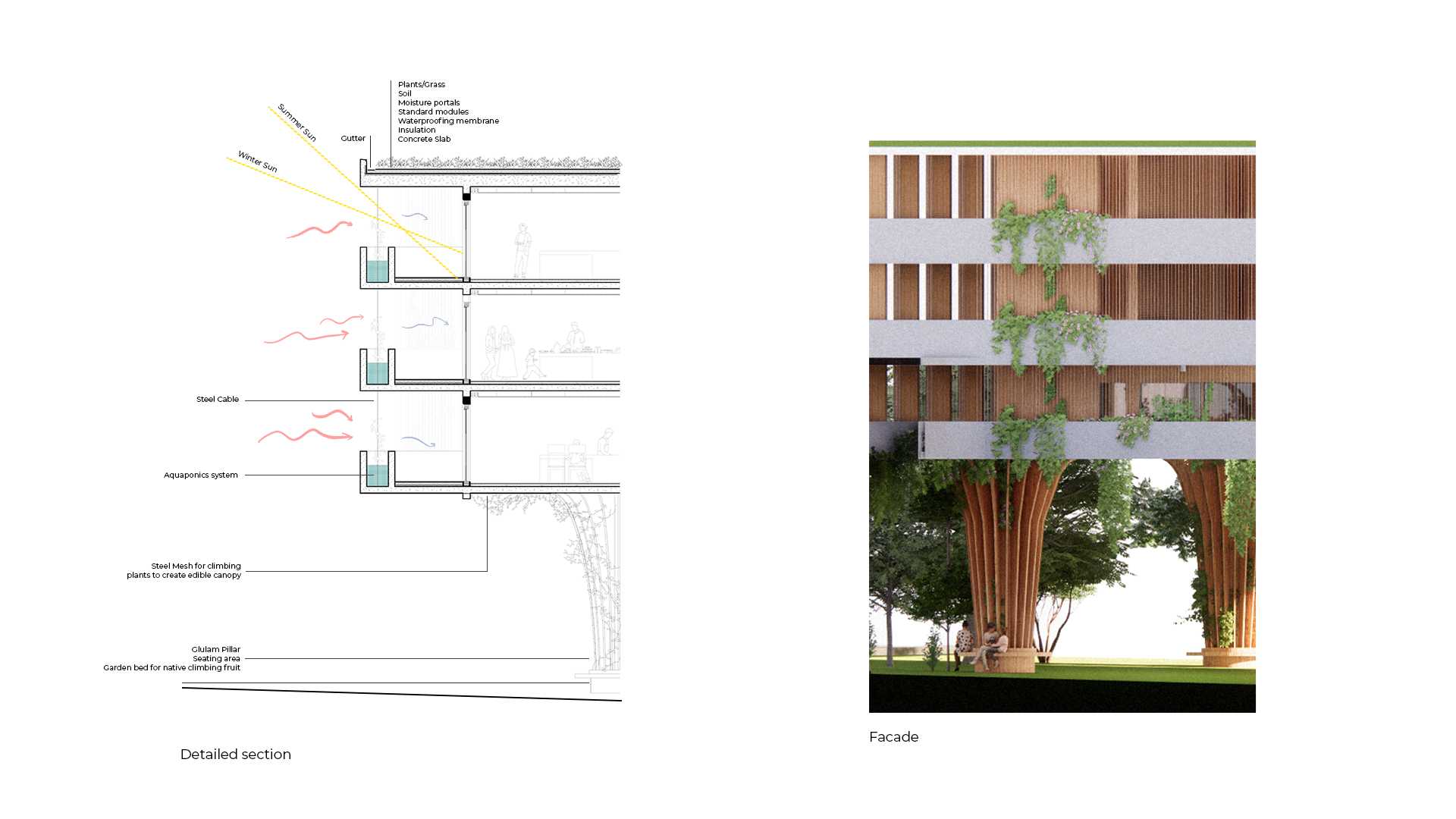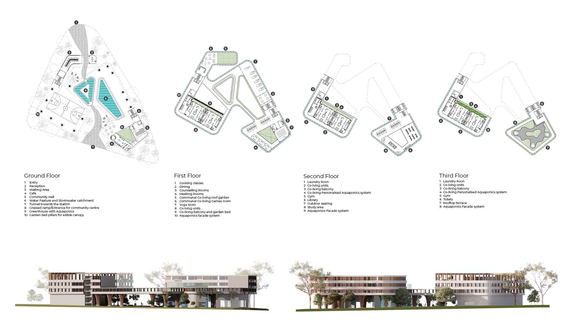 My project in Blacktown is a design solution that blends sustainability with community engagement to address food security. At the heart of the concept is an edible canopy, a living, green resource that provides fresh produce while transforming the urban environment. The modular co-living spaces offer flexible arrangements to suit diverse lifestyles, fostering inclusivity and shared living. A central community hub serves as an educational space, where residents can learn about native foods and sustainable practices through workshops and hands-on experiences. By integrating food production with daily life, this project empowers healthy living, promotes collaboration, and builds a resilient, thriving ecosystem.